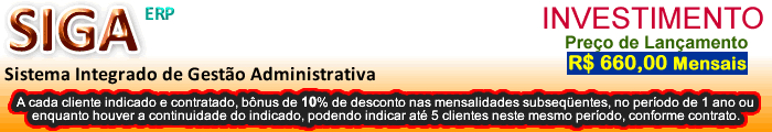 Desenvolvido na plataforma multi-usuário, o SIGA 4.0 ERP - Sistema Integrado de Gestão Administrativa traz para as empresas uma Gestão Empresarial de fácil operacionalização com muitas funcionalidades que agiliazam os processos do dia-a-dia, desde as solicitações de compra, até o controle efetivo do pagamento das duplicatas, integrados ao controle gerencial do Estoque e dos Bens Patrimoniais da empresa.