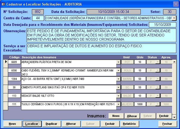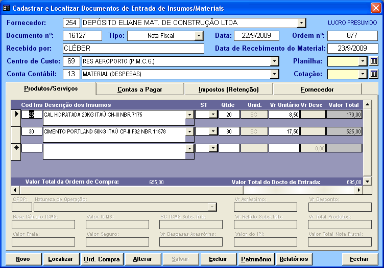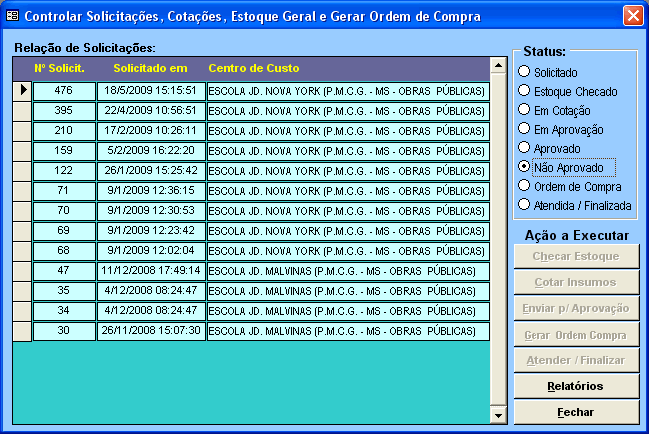 Módulo de Compras com integração desde a Solicitação de Insumos, passando pela Aprovação, Cotação, Pedido de Compra e a efetivação da Compra através do Lançamento da Nota Fiscal de Entrada. Está integrado com o Módulo Financeiro e Módulo de Estoque.