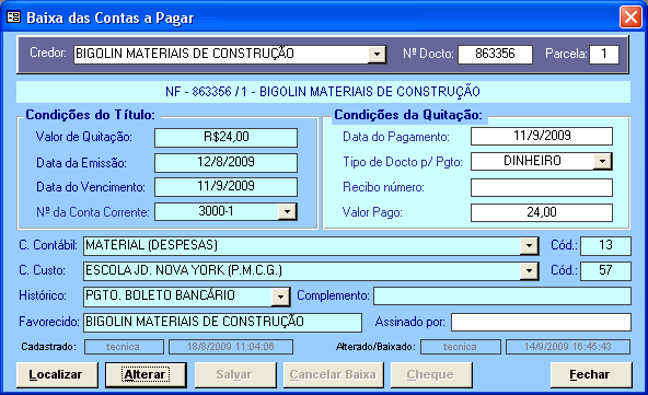 No Módulo Financeiro temos o Contas a Pagar e o Contas a Receber onde lançamos todos pagamentos e recebimentos futuro, definindo a conta corrente, o centro de custo e a conta contábil (despesa), gerando postgeriormente o balanço contábil de forma estruturada. As Baixas dos pagamento podem ser individual ou por Borderô. Podemos emitir a Cópia de Cheque e os Recibos de Pagamentos e Recebimentos. |
