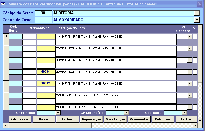 No Módulo de Patrímônio controlamos todos os bens patrimoniais por centro de custo, realizamos a depreciação mensal dos bens, controlamos as manutenções, realizamos as transferências e registramos as baixa nos bens. O Levantamento do Inventário Patrimonial poderá ser realizado de forma manual ou através de coletor com leitor de código de barras.